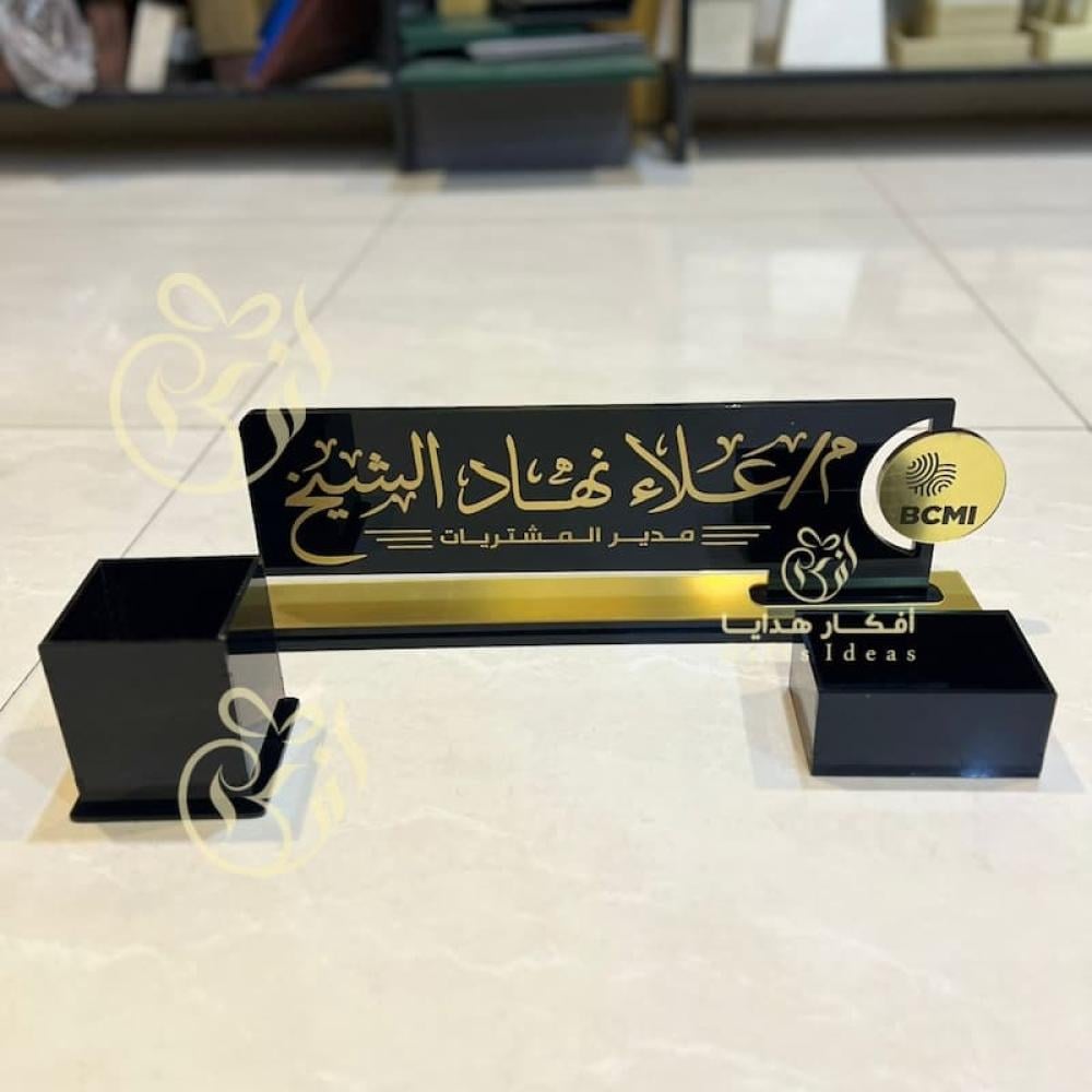 طقم مكتبي فاخر بالاسم والشعار والاسم الوضيفي يتكون من 3 قطع مناسبة تعطي لمسة خاصة للمكتب اطلبه وتفرد بمضهر مكتب فخم ومميز